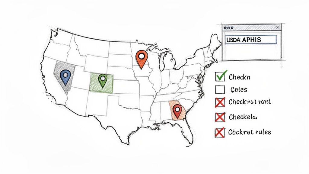 Your journey starts by figuring out who makes the rules. You're dealing with two main players: the USDA’s Animal and Plant Health Inspection Service (APHIS) at the federal level, and each individual state’s Department of Agriculture. It's usually the state-level rules that create the biggest headaches.