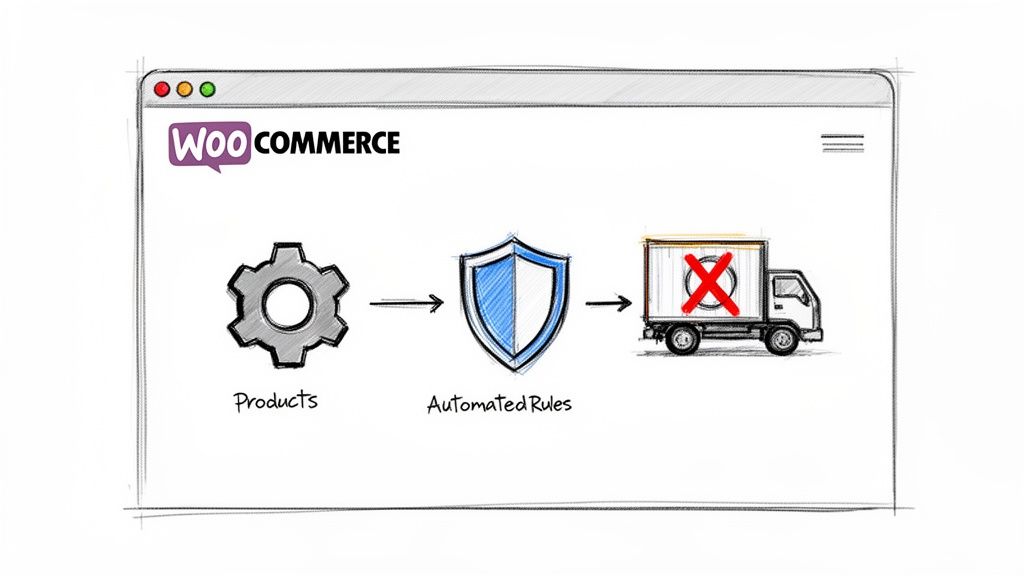 The heart of this automation is building smart shipping rules that stop illegal orders before they’re even placed. Using a tool like Ship Restrict for WooCommerce, you can create granular restrictions based on the specific product and the customer's shipping address.