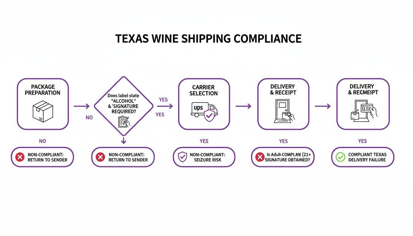 This flowchart maps out the journey of a compliant Texas wine shipment, from the moment it leaves your warehouse to the final delivery.